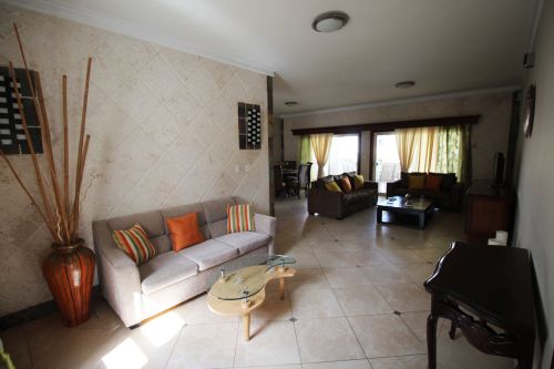 Luxury 3 bedroom and 3 bathroom second line beach apartment in the center of Cabarete with 2,350 sq ft, right on Cabarete Bay and convenient for all the water sports, restaurants and soaking up the sun. A large living room with an American kitchen separates the master bedroom from the two other bedrooms. The spacious terrace is reachable both from the master bedroom and from the living room. Decorated in a unique way using the highest quality materials and provides exceptional living conditions. From the apartment balcony you overlook a pool and covered sun terrace below where you can relax with your friends and neighbors enjoying the colorful tropical surroundings. The apartment has all the facilities you will need to live comfortably including washing machine and a dryer hidden away in a cupboard in the entrance way to two en suite bedrooms with walk in cabinets. The kitchen is next to the main entrance at one end of the room. The living and TV area is at the other end where the cathedral ceiling rises and where a mezzanine could possibly be added. There are patio doors leading to the balcony where four people can comfortably sit and enjoy a meal. The beachfront complex is also popular with renters should you want this as a holiday home.