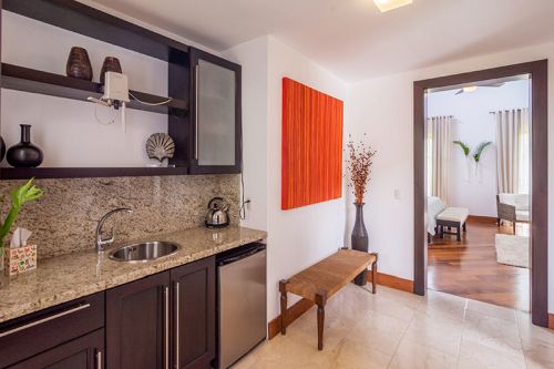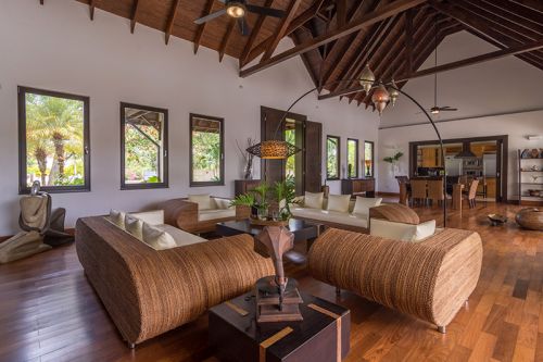 Handsome mahogany wood floors throughout the living and dining area compliment the light, open and airy feel of this villa. Ideal for entertaining, the expansive teak terrace surrounding the pool provides plenty of space for lounging and relaxing for many guests.