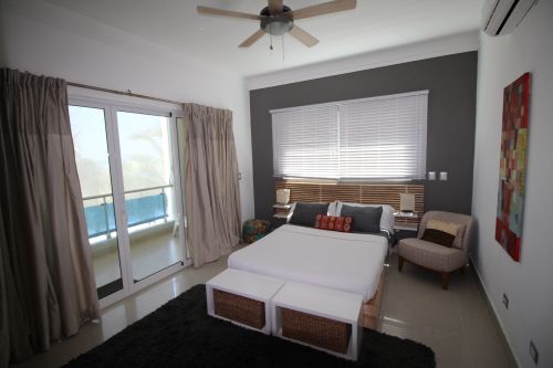 Superb 2 bedroom condo right on Cabarete Beach with first-class finishing details. Streamlined accommodation includes open plan living/dining-room with well fitted kitchen, two bedrooms, bathroom and two balconies, in total over 143 sqm. Super ocean views. Walking distance to all the attractions. Steps to ocean, shops, restaurants, and night life. No car necessary.