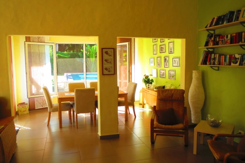 Very well designed and comfortable family home located just a short drive from the center of Sosua and convenient for all amenities and the beach. Open plan living/dining area with fitted kitchen, five bedrooms, four bathrooms. Large covered terrace for enjoying the tropical climate. Generous, walled lot with private pool and parking space.